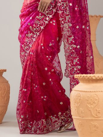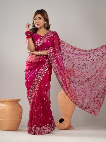 ইমপোর্টেড ওয়েটলেস সফট অরগাঞ্জা ফেব্রিকের মধ্যে গর্জিয়াস এমব্রয়ডারি করা পার্টি শাড়ি।