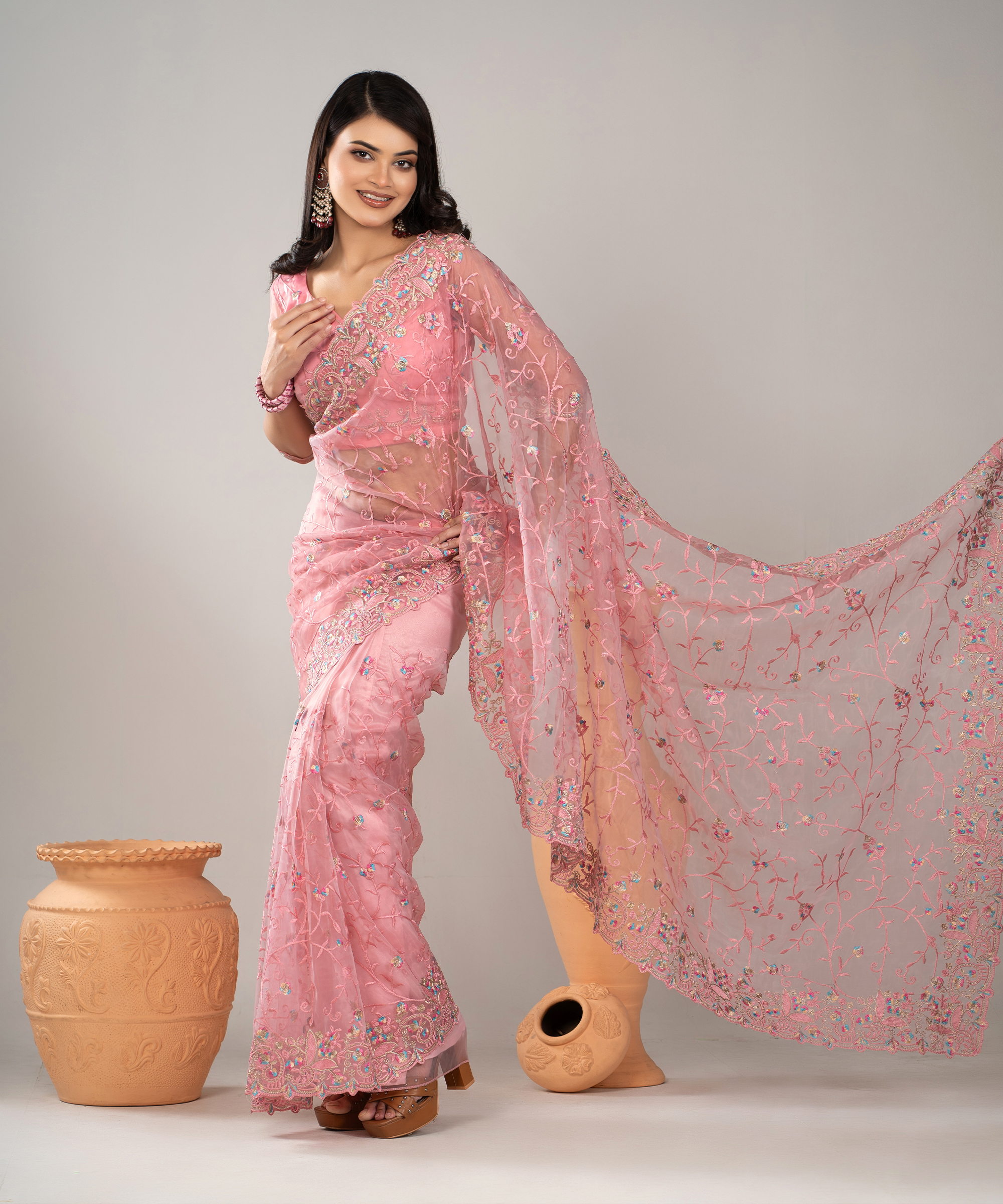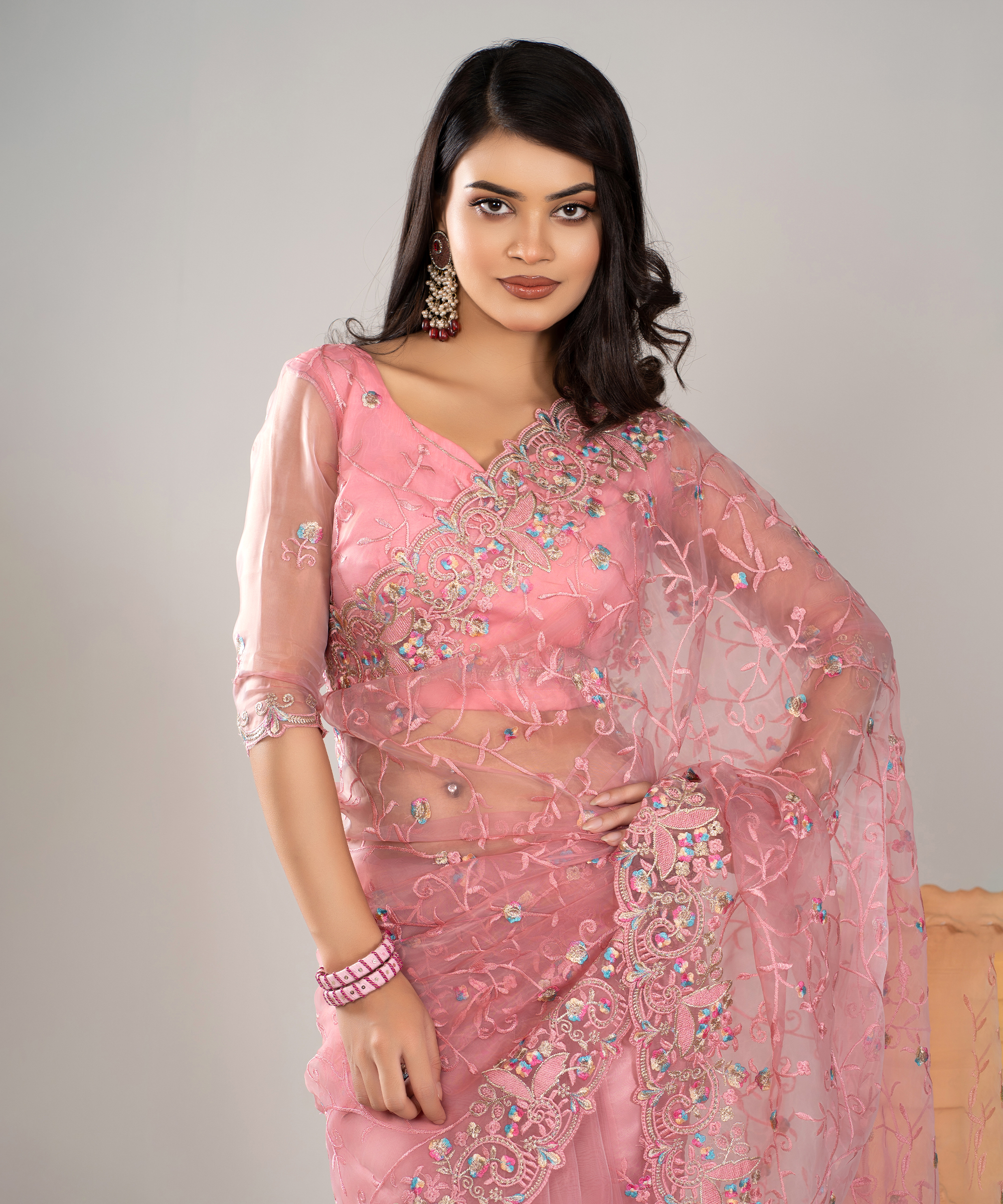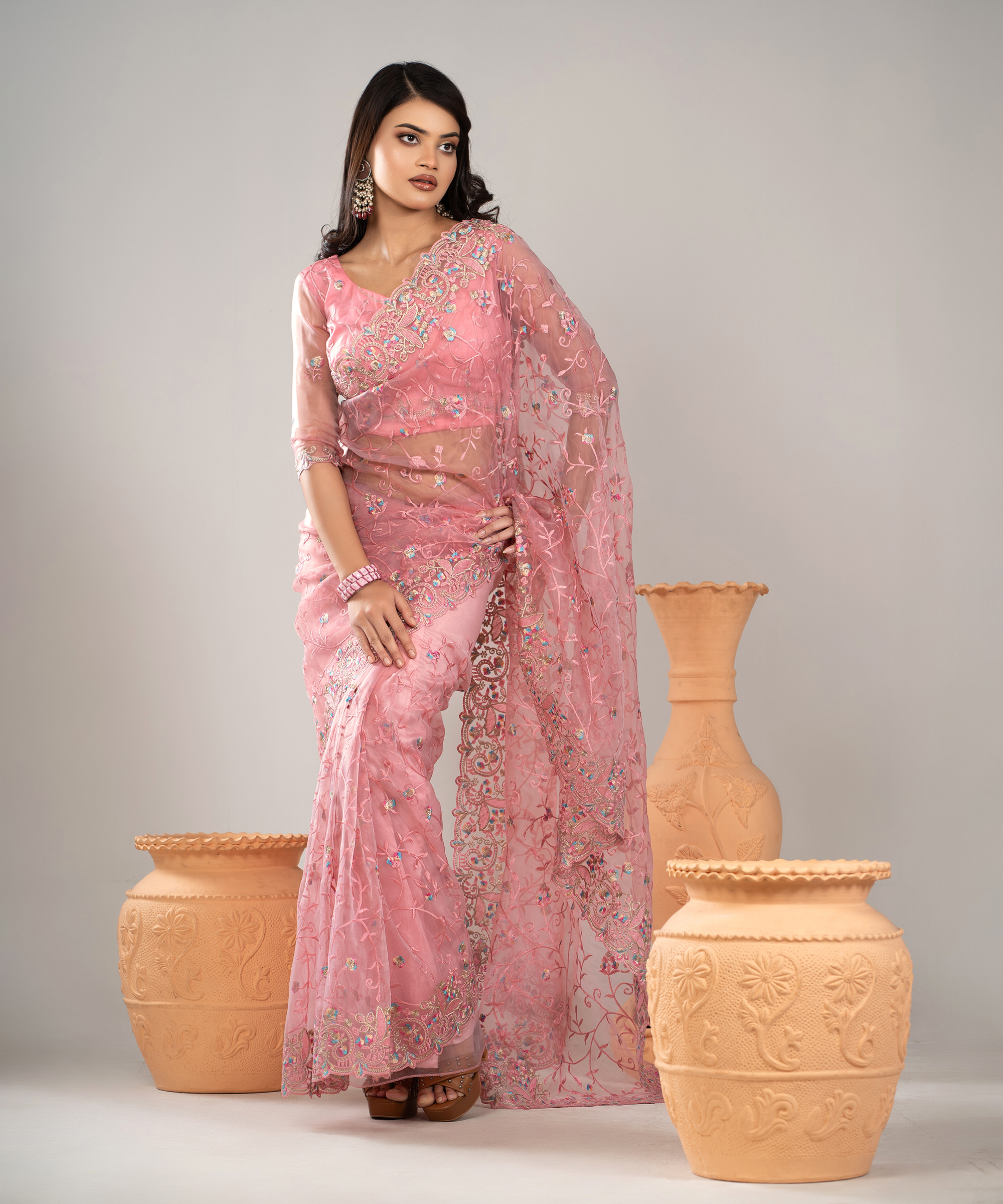 ইমপোর্টেড ওয়েটলেস সফট অরগাঞ্জা ফেব্রিকের মধ্যে গর্জিয়াস এমব্রয়ডারি করা পার্টি শাড়ি।