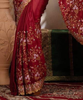 বিঃদ্রঃ এই শাড়িটি প্রায় ১৩ হাত পর্যন্ত লম্বা এবং গর্জিয়াস এমব্রয়ডারি কাজ করা একটি ব্লাউজের পিস্ থাকবে যা সেলাইবিহীন। আপনার পছন্দ অনুযায়ী সেলাই করে নিতে হবে।