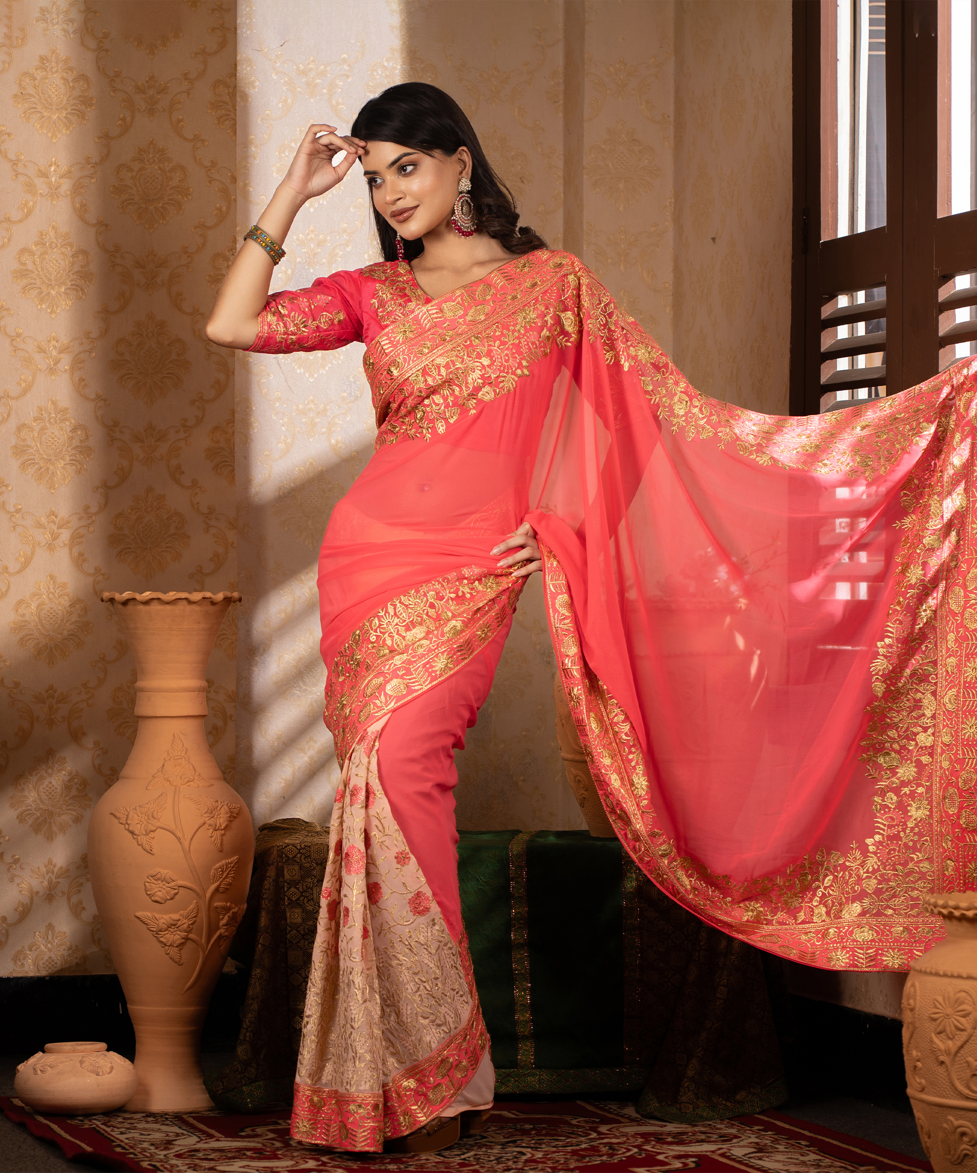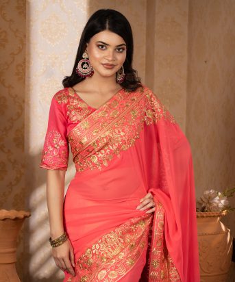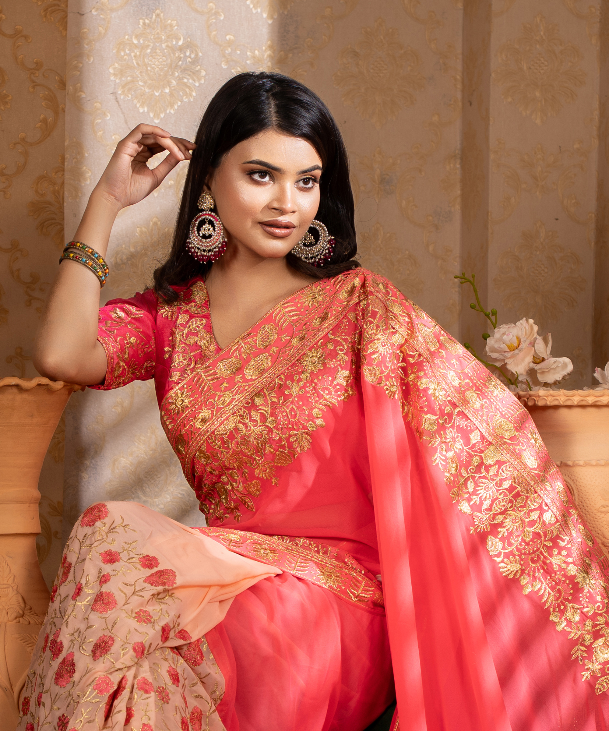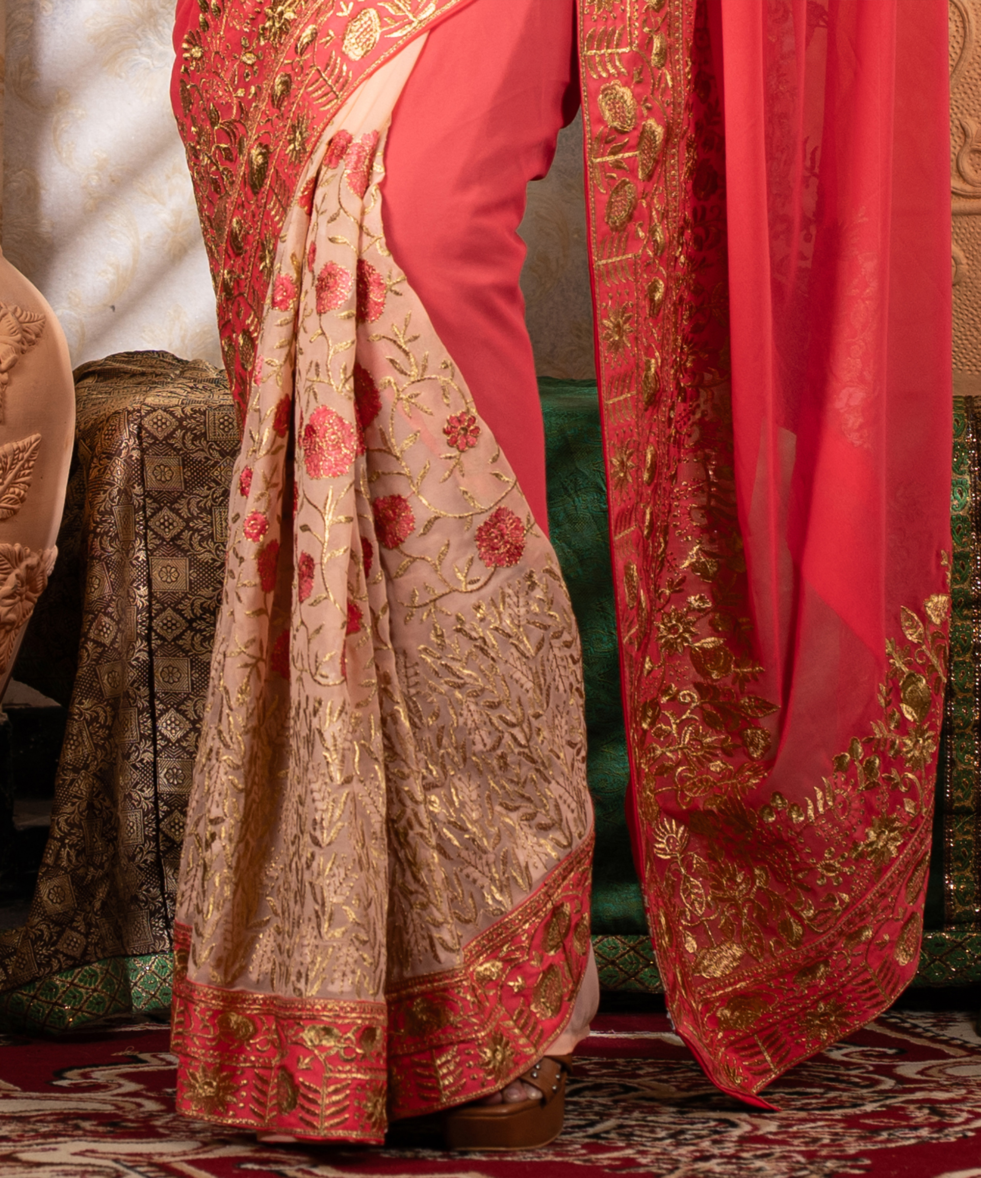 ইমপোর্টেড ওয়েটলেস সফট জর্জেট ফেব্রিক এর মধ্যে গর্জিয়াস এমব্রয়ডারি কাজ করা পার্টি শাড়ি।